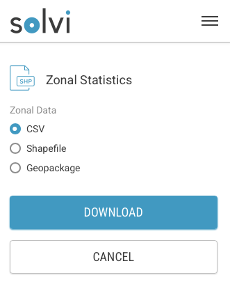 Once statistics have been calculated and reviewed, you can download the results from the Export tab in the Zonal Statistics panel.