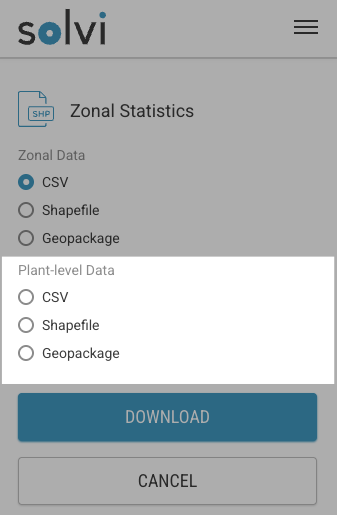 This section provides several export options depending on the level of detail you need — from summarized zone-level metrics to detailed, plant-by-plant data.