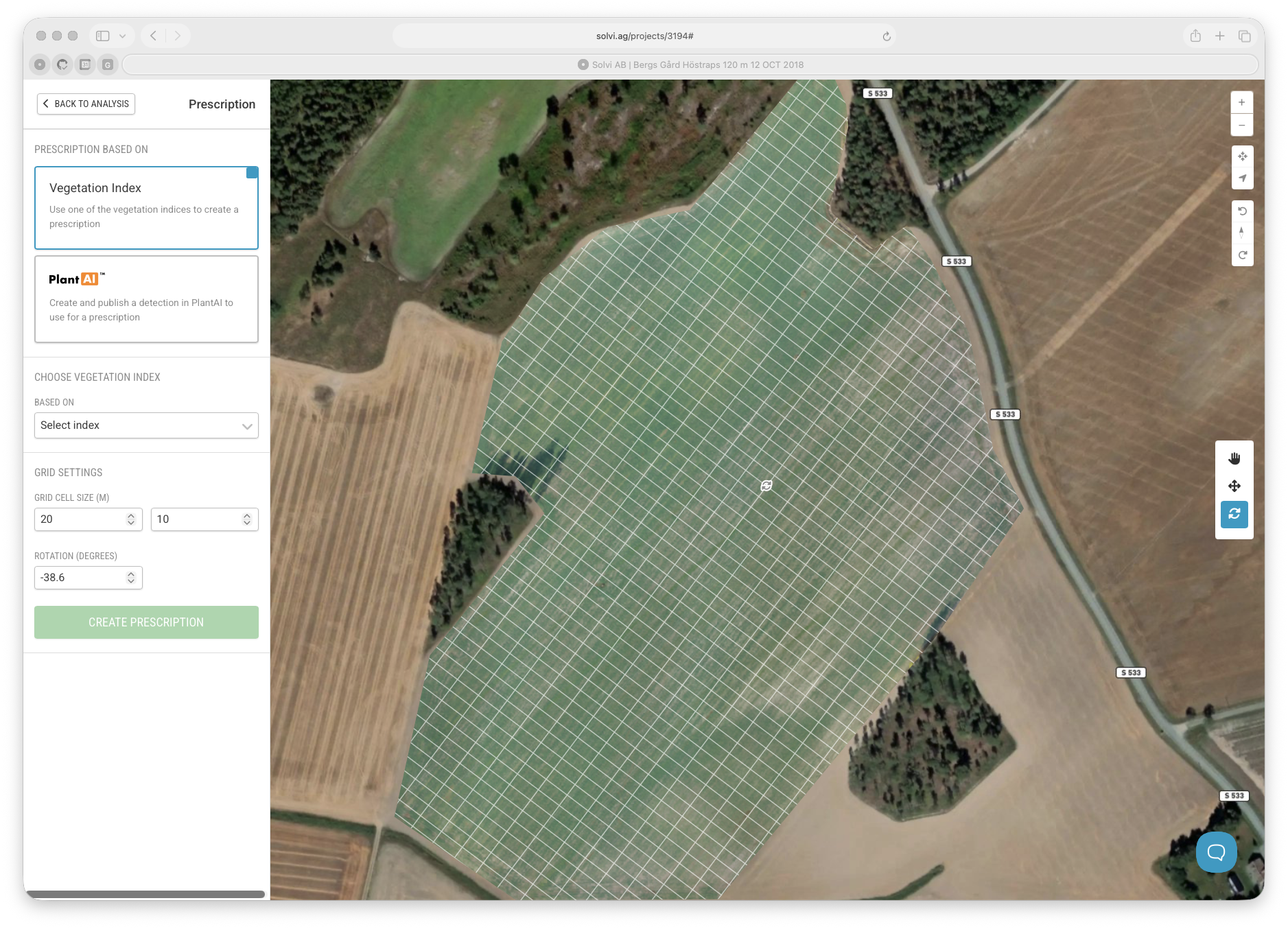 - Create a new prescription – Choose the data source (Vegetation Index or PlantAI).