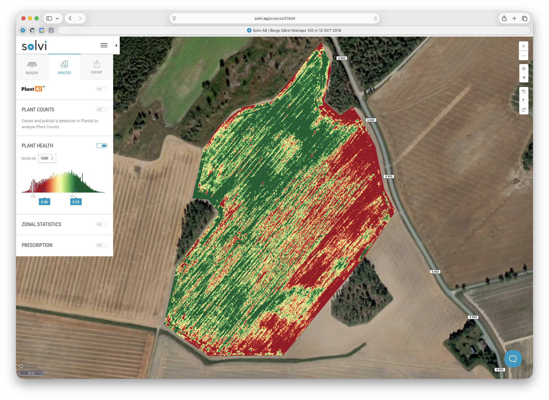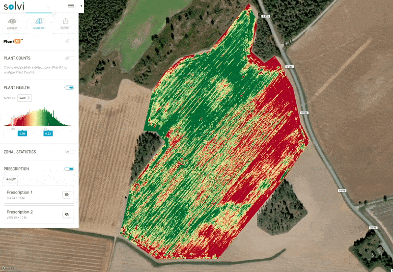Using this information, you can create variable-rate prescriptions to optimize fertilizer distribution — applying more where crop growth is limited and less where vegetation is already strong.