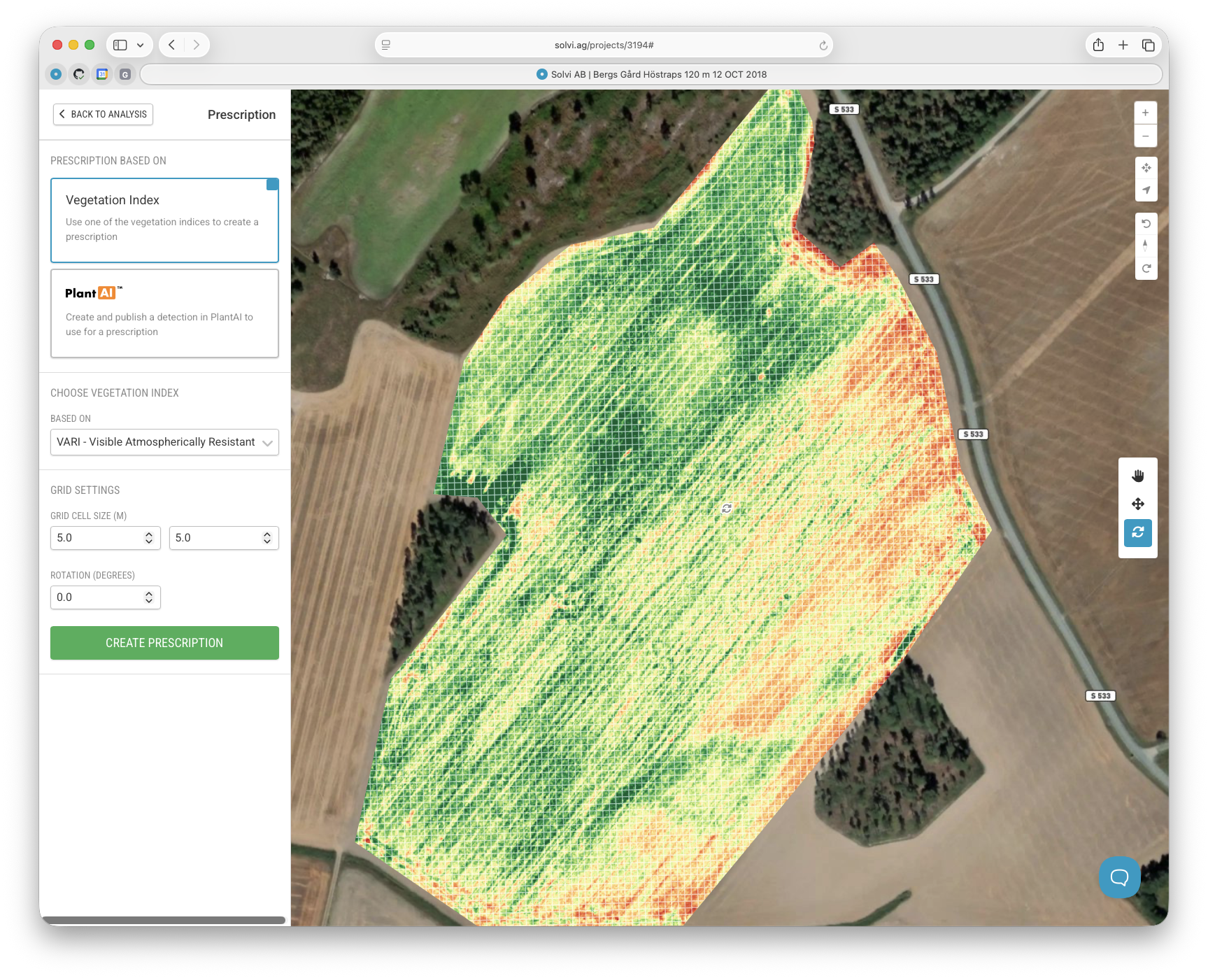 With the vegetation index–based approach, you can create data-driven fertilizer maps that improve efficiency and promote even crop development across the field.