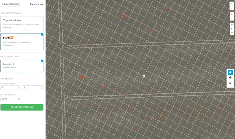 The tool will analyze each grid cell and determine whether it overlaps with detected weed patches.