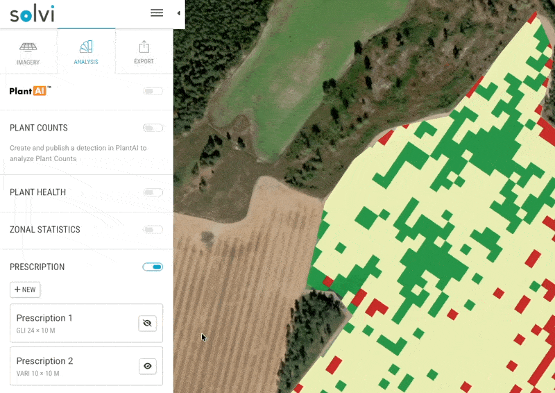 Once a prescription map is created and saved, it can be exported from Solvi in several file formats compatible with a wide range of agricultural machinery and software platforms.