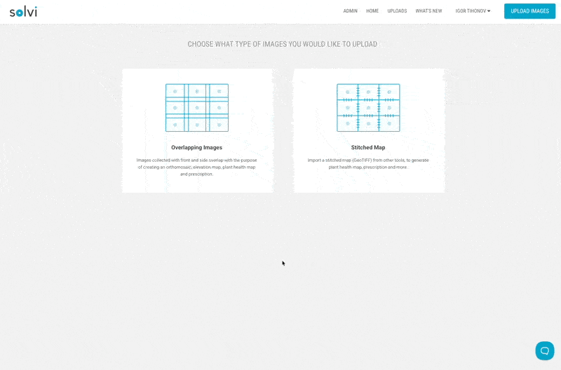 Before uploading, you need to prepare the imagery collected during your flight. The process depends on the type of dataset you have — RGB, multispectral, thermal, or a stitched GeoTIFF. Each type has its own specifics, but all follow the same workflow of selecting the correct files and staging them in Solvi.