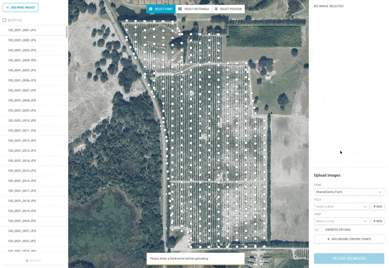 Fields can be created directly from the Upload workflow. If the correct Field does not already exist, simply click New Field, give it a name, and the Field will be added to the Farm.